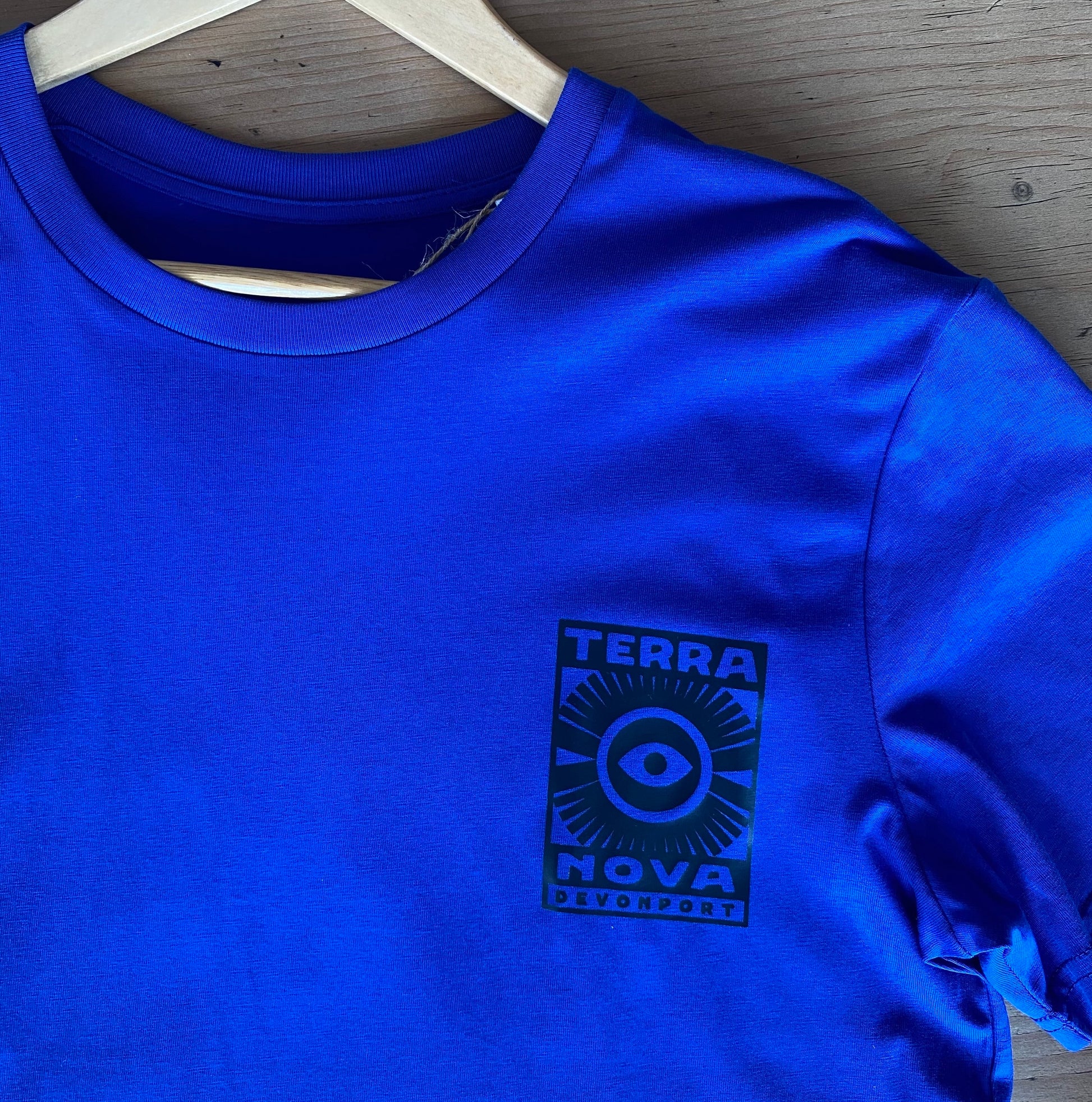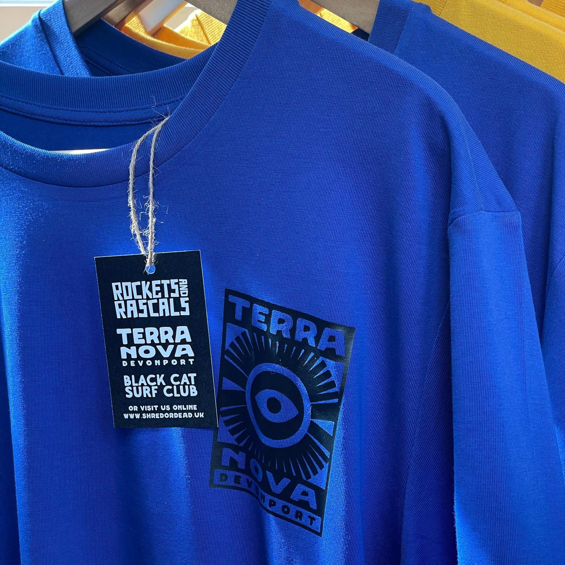 This Terra Nova T-Shirt is royally blue. We've screen-printed our Terra Eye in black on the front and the back so you'll be looking electric wherever life takes you.
